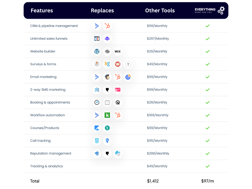 This is why patching together ClickFunnels, Calendly, Mailchimp, or low-end 'all-in-ones' have failed to save you time, get you more clients, or create real business freedom. Install my funnels instead!"