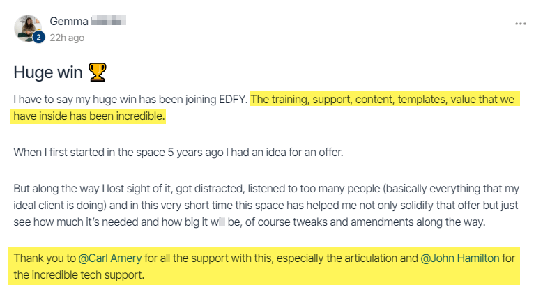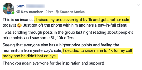 • Private coaching community where you can network, share wins, get feedback, and learn from other coaches who are already getting results