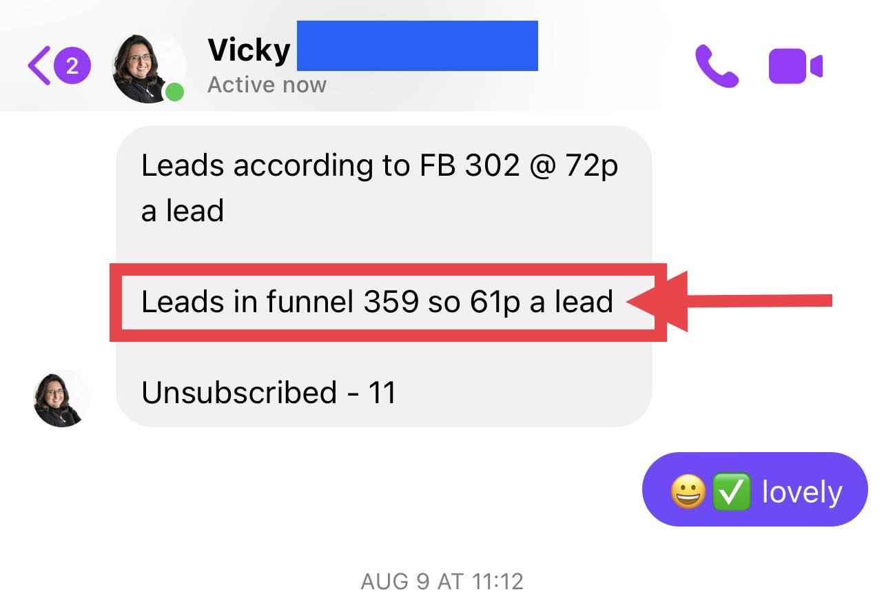 "Cost per lead is the best I've seen, just 61p and going strong." - Vicky