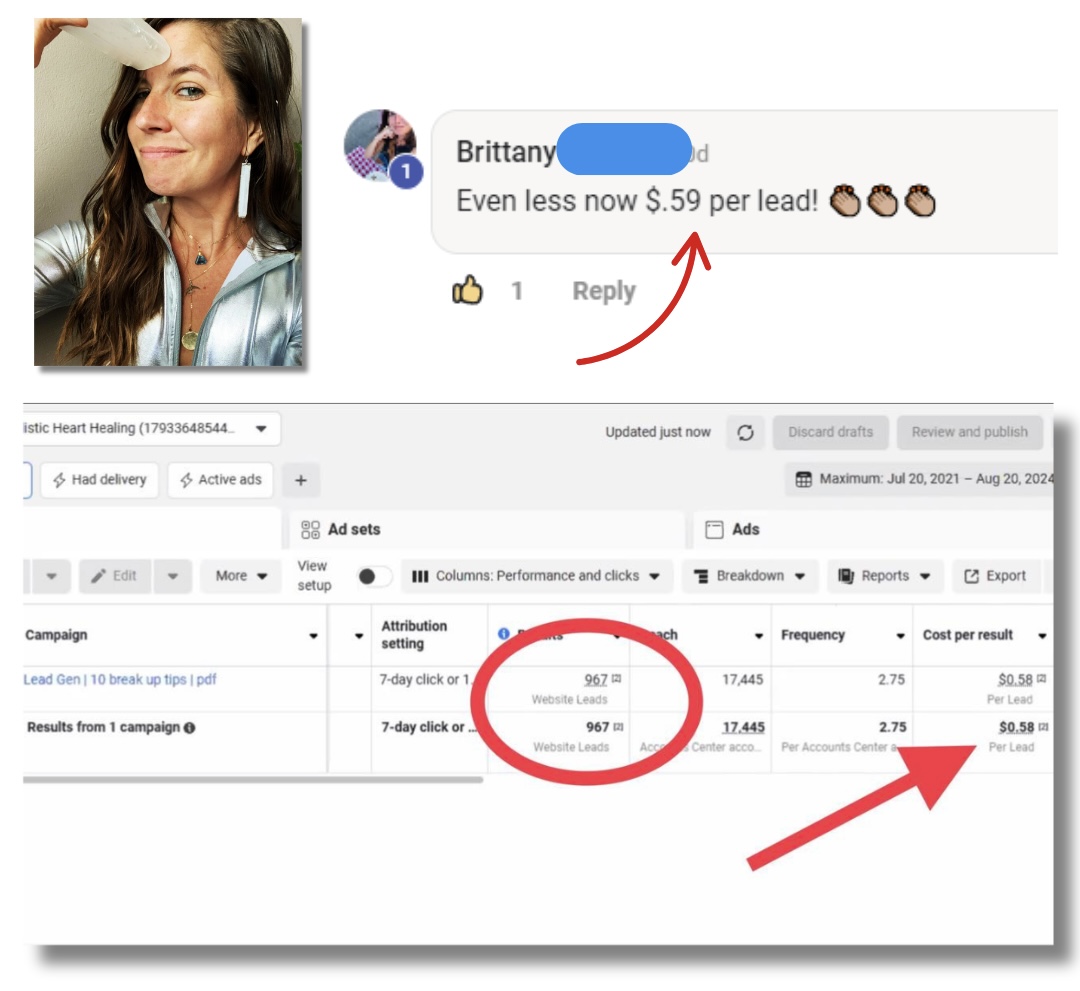 "Over 1000 new leads for only $0.59 per lead." Brittany